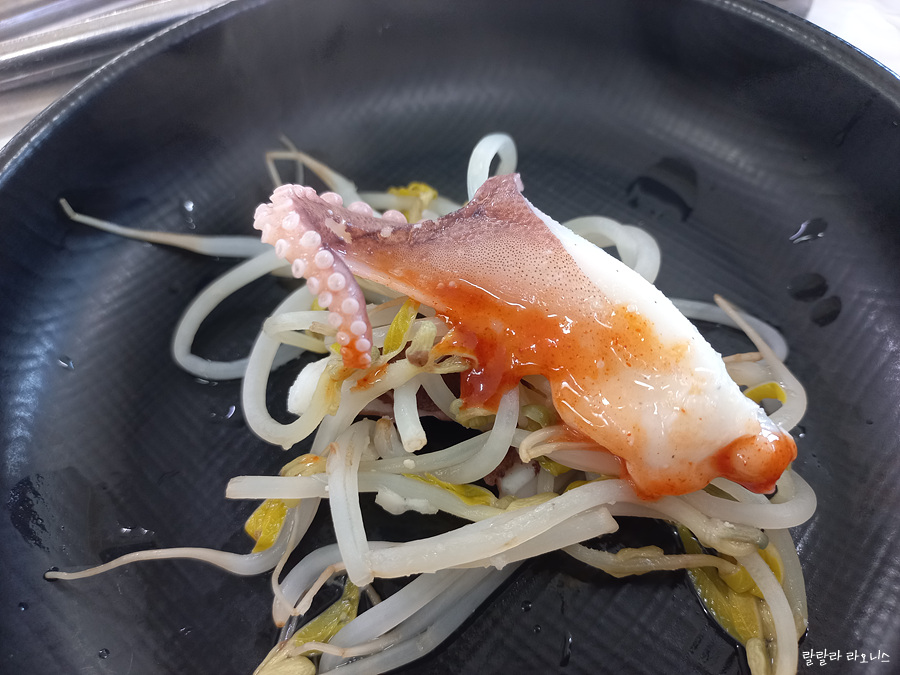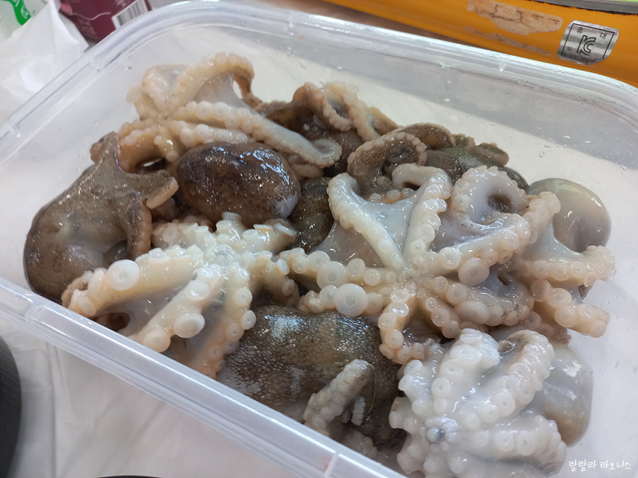 주꾸미는 플라스틱 통에 담겨서 테이블로 나옵니다. 쏴라있네. 주꾸미가 표준어입니다. 자장면과 짜장면은 다 표준어인데 쭈꾸미는 표준어가 아닙니다. 봄에 죽순이 많이 나올 때 잡힌다고 해서 죽금어라 불렸고 주꾸미가 되었다는 썰이 있습니다.