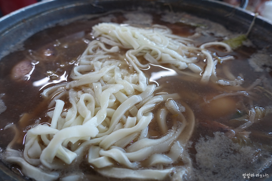 주꾸미 다 먹고 칼국수 면 사리를 넣습니다. 칼국수 사리가 살짝 얼어있네요. 냉동해 두셨나 봅니다. 살짝 얼어있다고 해서 끓여 먹는 데 문제는 없습니다. 기본 밑국물 육수에 주꾸미가 녹아들어 가면서 국물이 진해졌습니다. 칼국수 맛은 긴 설명이 필요 없을 것입니다. 어른 3명이 주꾸미 1kg, 멍게 1kg, 칼국수 사리 2개로 든든한 점심식사 하였습니다.