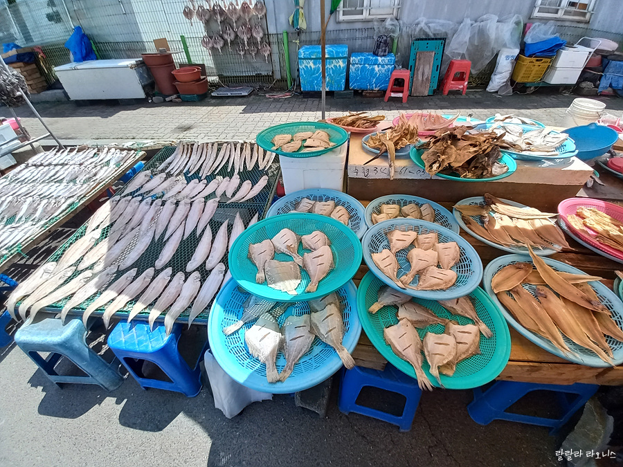 어머니는 말린 생선을 사고 싶어 하십니다. 대천항 수산시장에는 말린 생선 파는 곳이 보이질 않습니다. 말린 생선 파는 곳이 있을 법도 한데 하는 생각에 두리번거립니다. 수산시장에서 100여 m 떨어진 보령수협 위판장 앞에 노점이 모여 있는 게 보입니다. 차 끌고 가까이 가보니 말린 생선 파는 노점이 몇 개 있습니다. 백조기, 양태 등을 구매합니다. 말린 우럭을 구매하고 싶었는데 요즘 우럭값이 엄청 비싸다네요. 밥 잘 먹고 쇼핑까지 완료합니다.