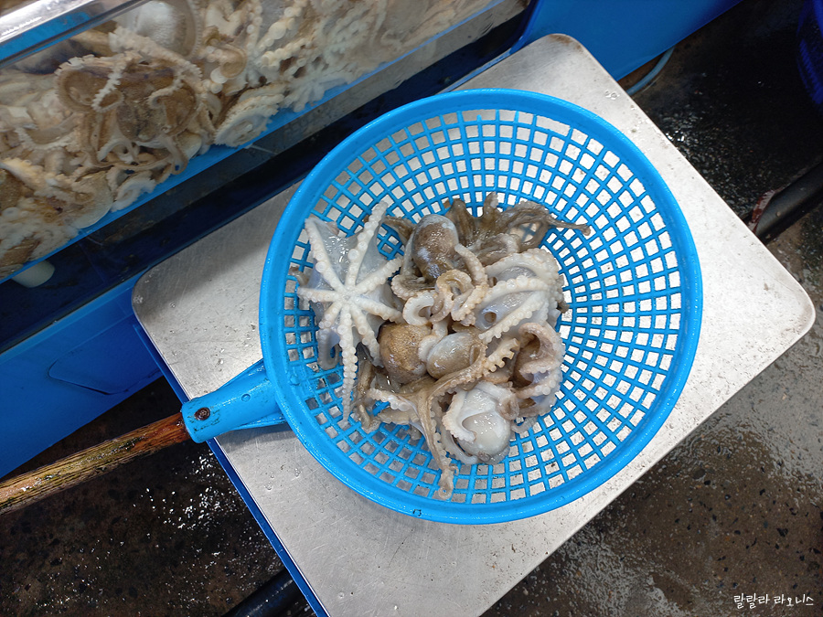 수산물 먹고 가겠다고하면 이층으로 올라갑니다. 수산시장(평택수산) 직원이 수산물을 들고 앞장섭니다. 우리는 뒤를 따라갑니다. 이층 한내회타운에서 주꾸미와 멍게를 먹습니다. 수산시장 가게마다 정해진 식당이 있는 것 같습니다. 평택수산 직원과 식당 직원이 인사를 나눕니다. 주꾸미는 샤부샤부 할 것이라 이야기해 줍니다. 멍게는 손질해서 내어줄 것이고요.
