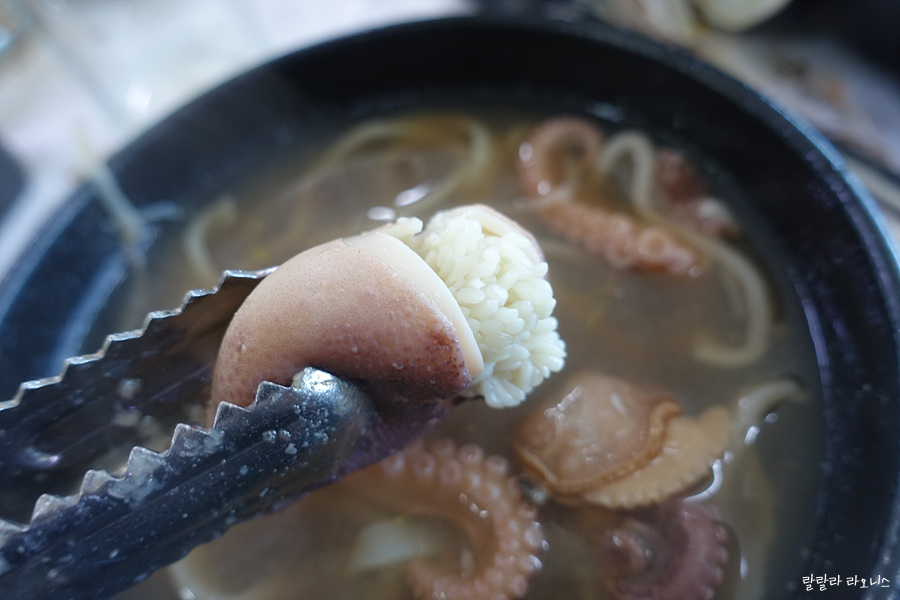 밑국물 끓어오르고 살아있는 주꾸미를 밑국물에 넣습니다. 살아있는 생명체가 뜨거운 물에 들어가서 몸을 비틉니다. 그걸 또 싱싱하다고 보고 있으니 참. 주꾸미가 맛있게 잘 익어가기를 기다립니다. 잔인하다면서 군침 흘리는 이중성. 주꾸미를 넣고 20~30초 정도 기다립니다. 머리를 자릅니다. 머리는 좀 더 두고 다리는 재빨리 건져 먹습니다. 머릿속 내장은 좀 더 익혀 녹진한 맛을 먹습니다. 다리는 오래 익히면 질겨지니 빠르게 건집니다.