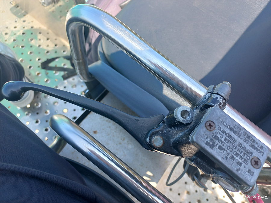 4월의 바다는 봄바람, 바닷바람이 섞여서 바람이 제법 강합니다. 이날만 그럴 수도 있겠지만요. 여름이면 시원하다고 할 수 있지만 봄날 강한 바람은 서늘함도 있습니다. 바이크에 커다란 장우산이 있습니다. 햇볕 가리게 용도로 사용하라고 둔 것 같습니다. 우산을 펼치니 햇볕도 막고 바람도 막을 수 있었습니다.