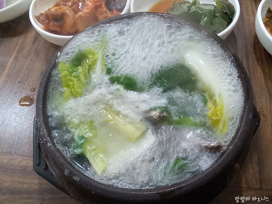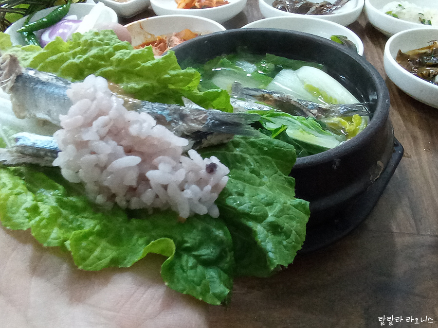 기본 반찬이 깔립니다. 이 집은 반찬도 맛있습니다. 생선 종류는 알지 못하지만 조림도 있고요. 멸치는 내장을 다 발려서 볶아서 나왔습니다. 겨울이라 무나물이 맛있습니다. 빈 접시에는 김치 담으면 됩니다.