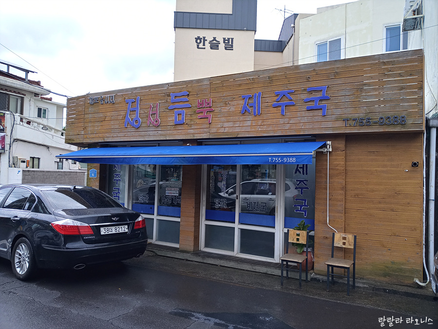 정성듬뿍제주국은 제주도 구도심 주택가에 있습니다. 예전 제주시의 중심인 목관아와 가깝습니다. 오랜만에 렌터카 몰고 제주 시내를 운전하다 보니, 내비게이션이 길을 알려주어도 몇 번 방향을 잘못 들어갑니다. 무사히 식당 앞에 도착합니다. 식당 옆에 주차장이 있다고는 하는데, 몇 대 들어갈 수 없습니다. 식당 근처에 적당히 주차합니다. 다행히 이른 시간이라 빈 공간이 있습니다.