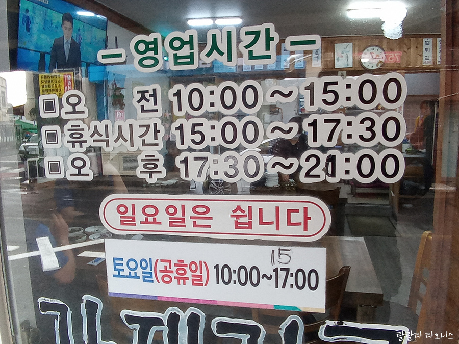 정성듬뿍제주국을 찾은 이유는 두 가지입니다. 서두에도 말씀드렸다시피 제가 좋아하는 식당입니다. 두 번째는 오픈을 일찍 합니다. 10시에 문을 엽니다. 아점을 먹기에 적당한 시간입니다. 오후 9시까지 영업하고 중간에 휴식 시간도 있습니다. 일요일은 휴무입니다. 보통 관광지 식당은 일요일에 문을 엽니다. 관광객이 주말에 많이 오니까요. 이 집은 동네 장사하는 곳이라 일요일은 쉽니다. 요즘은 관광객들도 꽤 많이 찾는 것으로 알고 있습니다.