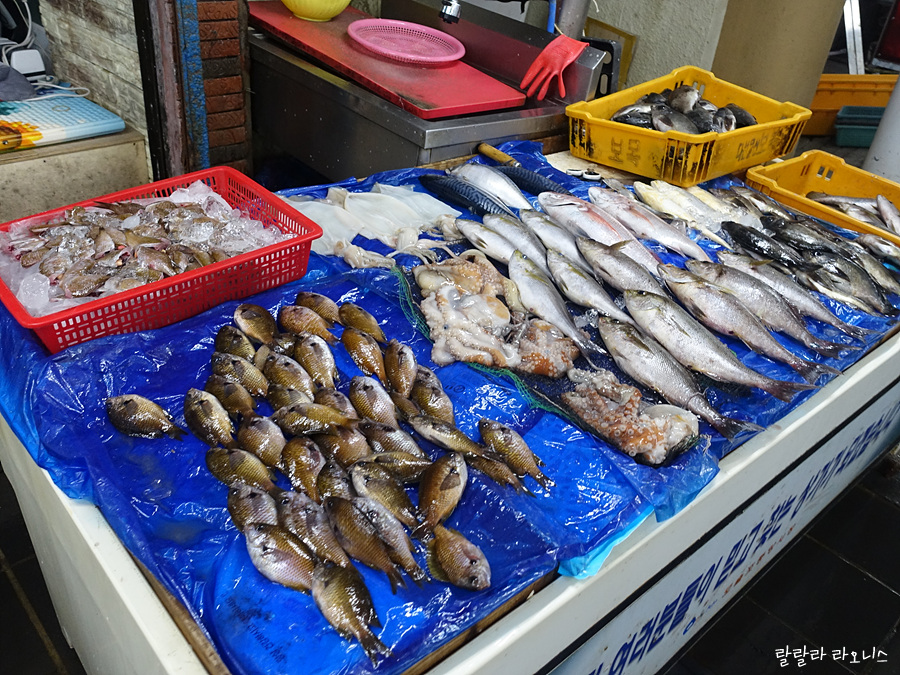 항구와 가까운 시장이기에 싱싱한 해산물을 볼 수 있습니다. 여름 해산물인 자리돔, 한치가 반갑습니다. 작년 겨울에 먹었던 방어도 생각납니다.