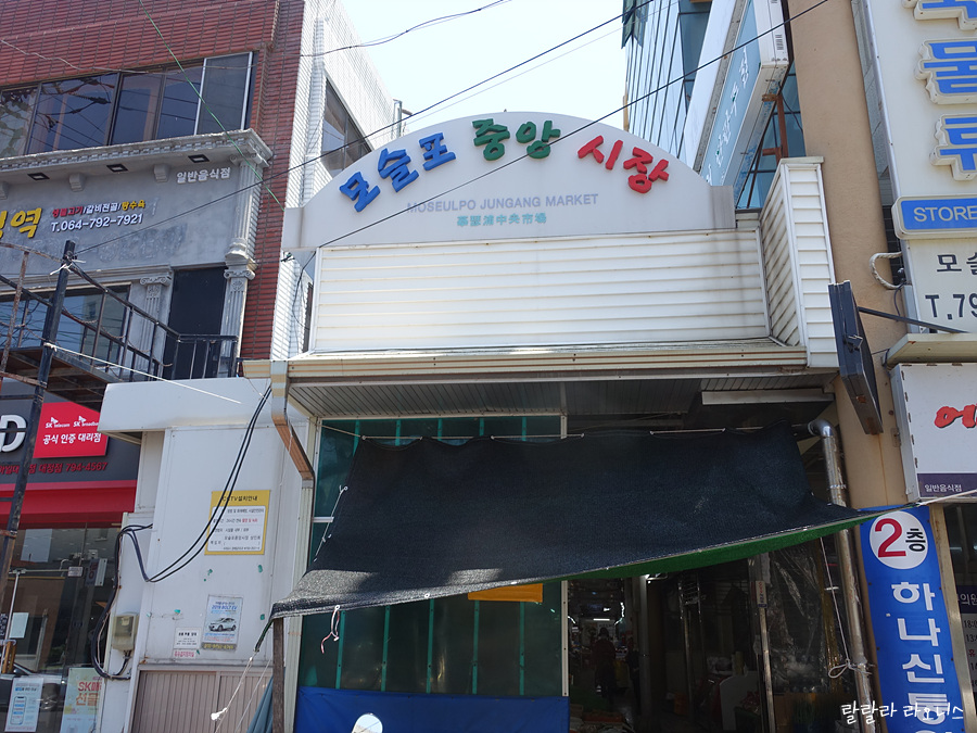 모슬포 중앙시장으로 들어갑니다. 모슬포 일대에서는 오일장만 열리다가 1950년 들어서면서 소규모로 시장이 만들어집니다. 1955년 모슬포 상설시장이 만들어집니다. 시장은 1974년 지금의 모습을 갖추게 됩니다. 시장은 전체적으로 T 자 형태이고 40여 개 점포가 운영 중입니다. 우리나라에서 가잔 남쪽에 있는 시장입니다. 모슬포 중앙시장 말고 대정 오일장이 따로 있습니다. 대정 오일장은 1, 6이 들어간 날에 열립니다.