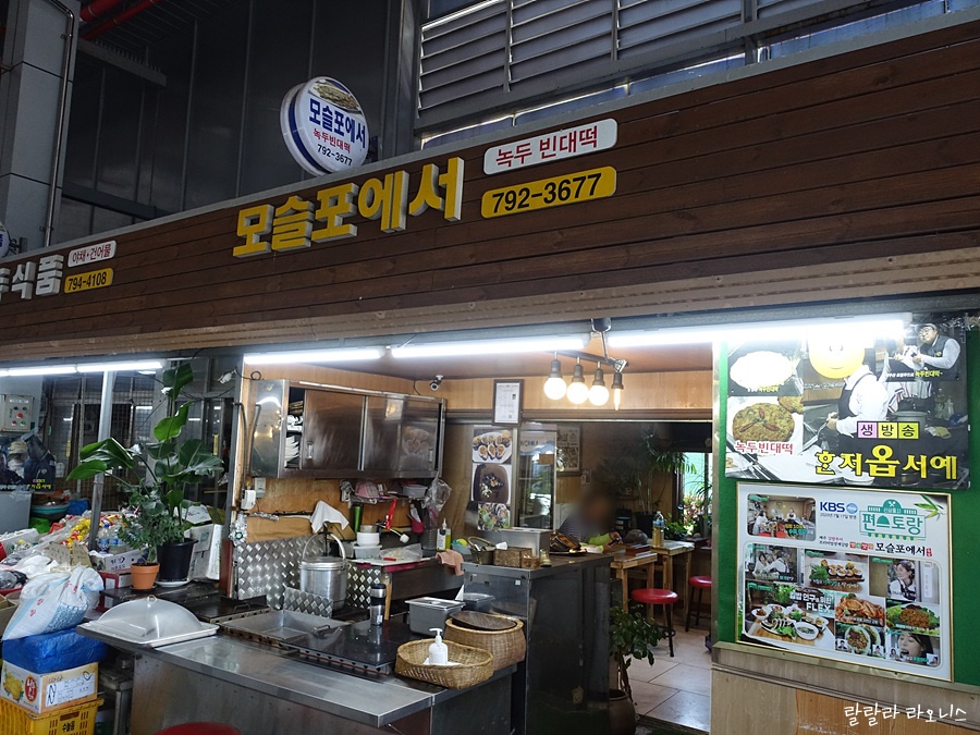 시장 안쪽에 '모슬포에서'라는 식당에서 김밥을 먹을 것입니다. 요 근래 방송에 여러 번 나왔기도 했고, 유명해진 곳이라서 손님이 많을 줄 알았습니다. 조용하네요. 저하고 아저씨 손님 두 명만 있습니다. 나중에 여행자로 보이는 한 팀이 왔다 가고요. 아주머니 한 분이 운영하고 있습니다. 시장 안에 있는 분식집이어서 떡볶이, 순대도 파셨던 것 같은데, 제가 갔을 때는 판매하지 않았습니다.