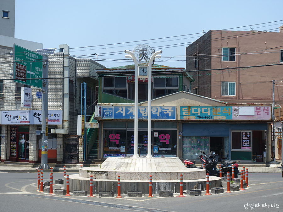 추사유배지에서 255번 버스를 탑니다. 방어축제의거리 정류장에서 내려야 하는데, 지도를 잘못 봐서 한 정거장 먼저 내렸습니다. 뜻하지 않게 10분 정도 더 걷습니다. 걸으면서 거리 구경을 합니다. 이런 게 여행의 잔재미 아니겠습니까? 대정읍 중심인 시계탑까지 왔습니다. 시계탑 부근에 모슬포 중앙시장이 있습니다.