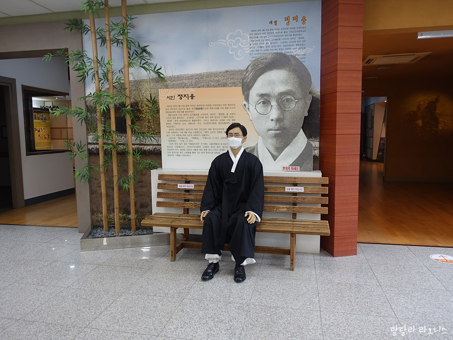 정지용 시인은 우리나라 대표적인 서정시인, 현대시의 아버지 등으로 불립니다. 일제강점기 암울한 시기에 섬세한 언어로 아름다운 시를 많이 남겼습니다. 한편으로는 저항시인으로서 일제에 저항하는 작품을 남기었습니다. 시인의 생가 옆에는 정지용 문학관이 있습니다. 문학관에서는 시인의 작품과 문학적 업적을 만날 수 있습니다. 문학관에서 시인과 함께 사진까지 찍으면 기억에 오래 남을 것입니다.