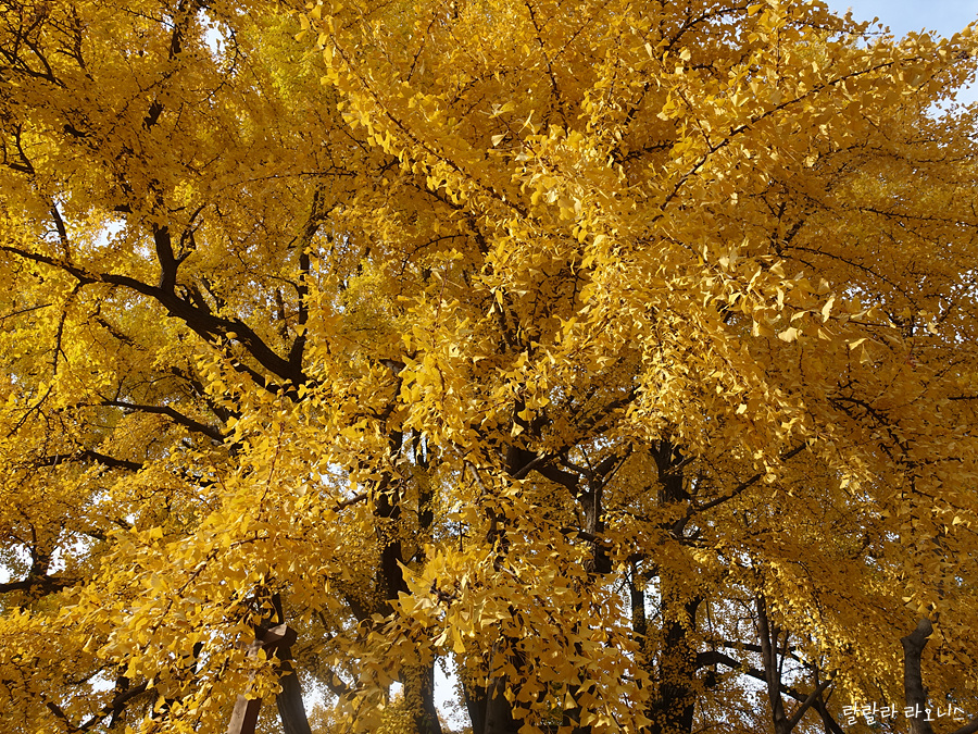 초록에서 노랑으로 변해가는 과정도 특색있습니다. 그러고 보면 예전에는 11월이면 은행잎이 다 떨어졌던 것 같은데, 요즘은 날씨가 따뜻해져서 그런지 단풍을 오래 볼 수 있습니다.