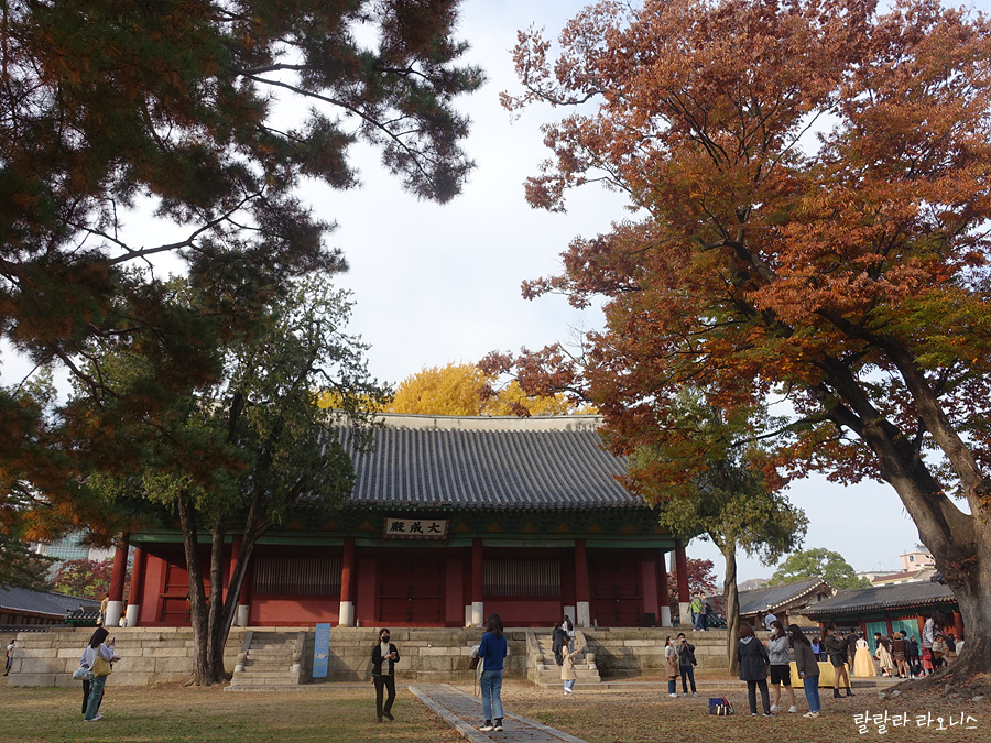 광장시장에서 밥 먹고 성균관대로 향합니다. 버스 타고 가는 거나 걸어가나 큰 차이는 없어 보였습니다. 가을을 즐기며 걸어가는 길을 선택합니다. 창경궁 담을 따라 지나갑니다. 길 건너 서울대학교병원도 보입니다. 창경궁 앞 매표소에 사람이 엄청 많습니다. 고궁 구경은 패스. 고이 단풍옷을 입은 나무들이 '나 여기 있어요'라고 손짓합니다. 다음에 올게.