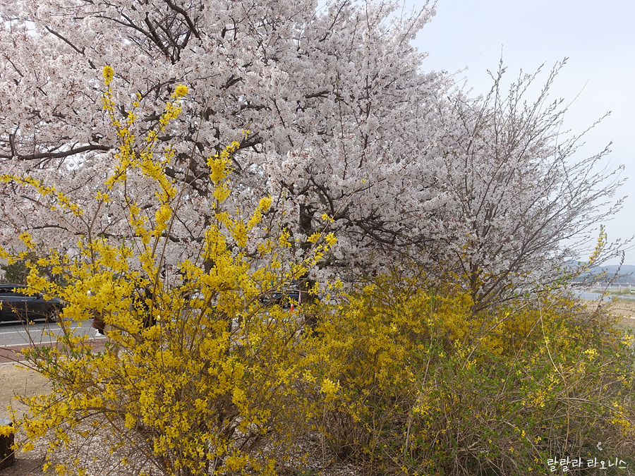 벚꽃과 개나리가 어우러집니다. 사진에는 없지만 복사꽃도 예쁘게 피었습니다.
