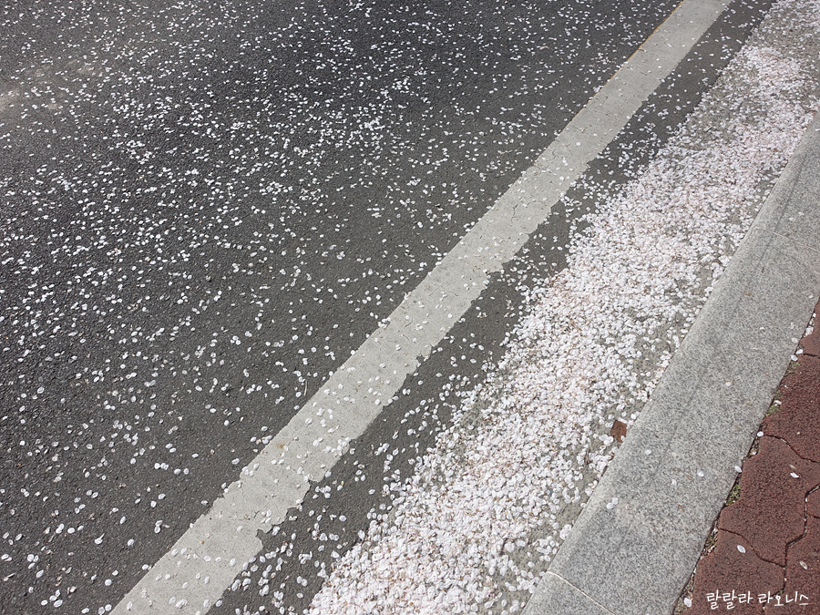 벚꽃잎이 떨어진 것이 보입니다. 바람 불면 벚꽃잎이 꽃비가 되어 흩날립니다. 꽃잎 모여 있는 것 주워서 공중으로 뿌려 보기도 합니다. 꽃잎이 후루루 떨어지면 마법처럼 뭔가 변신하는 상상도 더해봅니다. 샤랄라하게