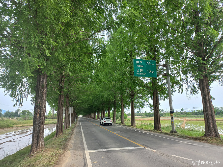 길을 계속 이어갑니다. 곡성 메타세콰이어길은 광양과 곡성을 잇는 840번 지방도로 중 일부입니다. 도로명 주소로는 낙동원로입니다. 840번 지방도로는 17번 국도와 연결되면서 남원, 전주와 연결됩니다. 메타세콰이어길 끝나는 지점이 곡성과 남원의 경계입니다. 남원은 전라북도, 곡성은 전라남도입니다. 예전에는 곡성으로 들어오는 메인 도로였지만 17번 국도 섬진강로가 만들어지면서 차량 출입이 줄었다고 합니다.