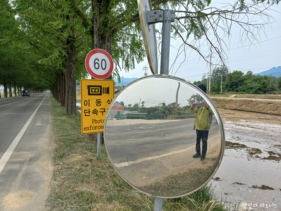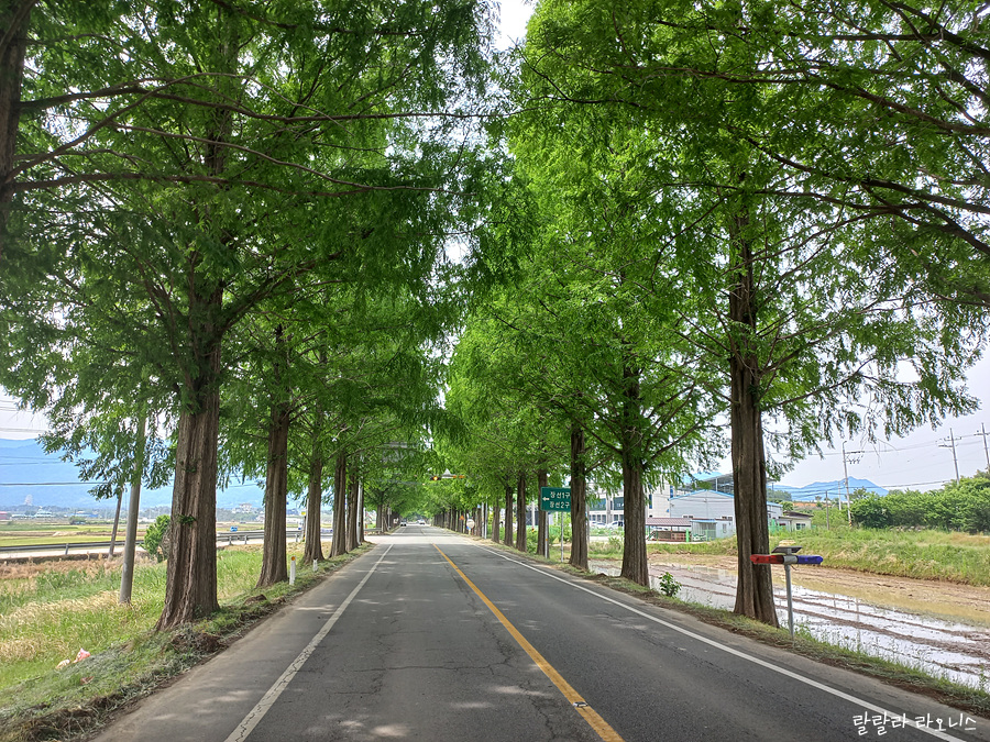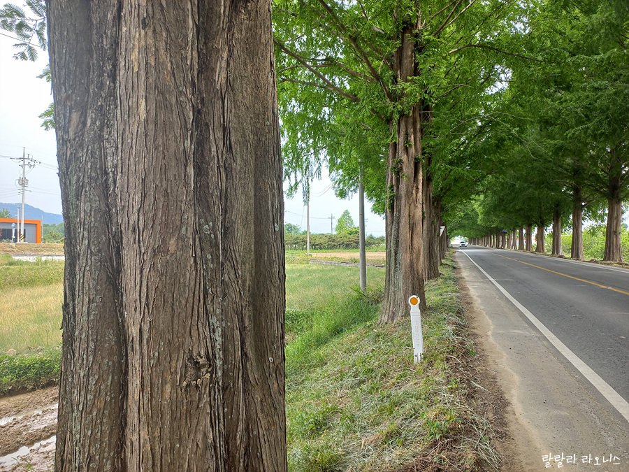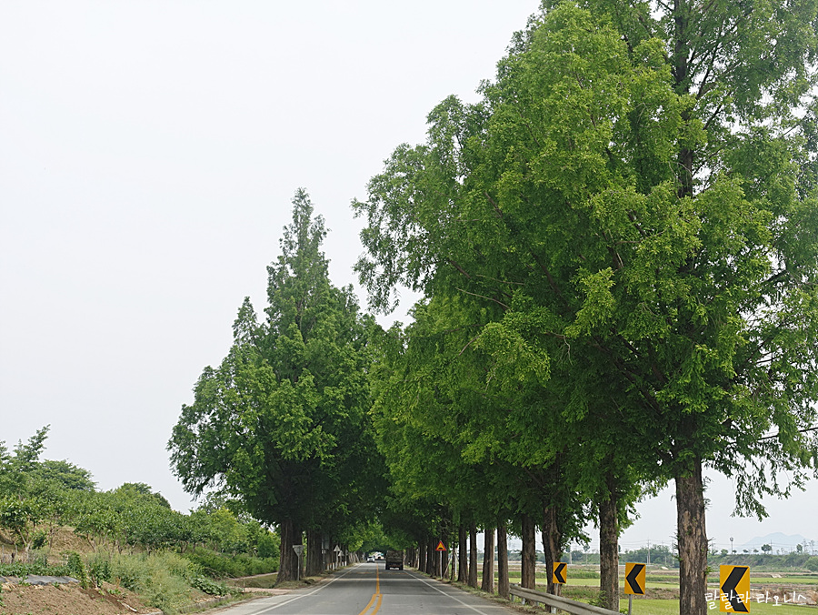 아저씨 말대로 길이 없습니다. 분명 지도 앱 보고 제대로 잘 왔습니다. 바로 앞에 목적지가 있는데 뒤돌아 가기 싫습니다. 어디로 가야 할지도 모르겠습니다. 에라 모르겠다 하고 논과 논 사이 고랑을 따라갑니다. 옆으로 빠질까 봐 조마조마하면서 걸어갑니다. 다행히도 옆으로 빠지진 않았습니다. 메타세콰이어길 가신다면 방향 잘 확인하시길 바랍니다.