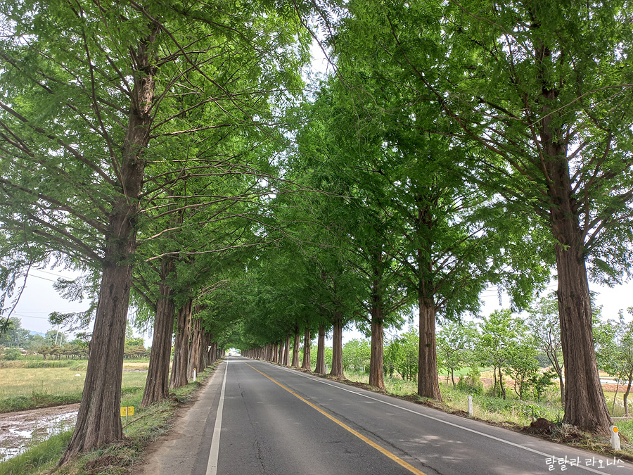 메타세콰이어길까지 오는데 사설이 길었습니다. 각설하고 이제는 뭐다? 메타세콰이어길 따라 걷기만 하면 됩니다. 이차선 도로 양옆으로 길게 뻗은 메타세콰이어길이 예쁩니다. 걷고 싶은 마음이 가득합니다.