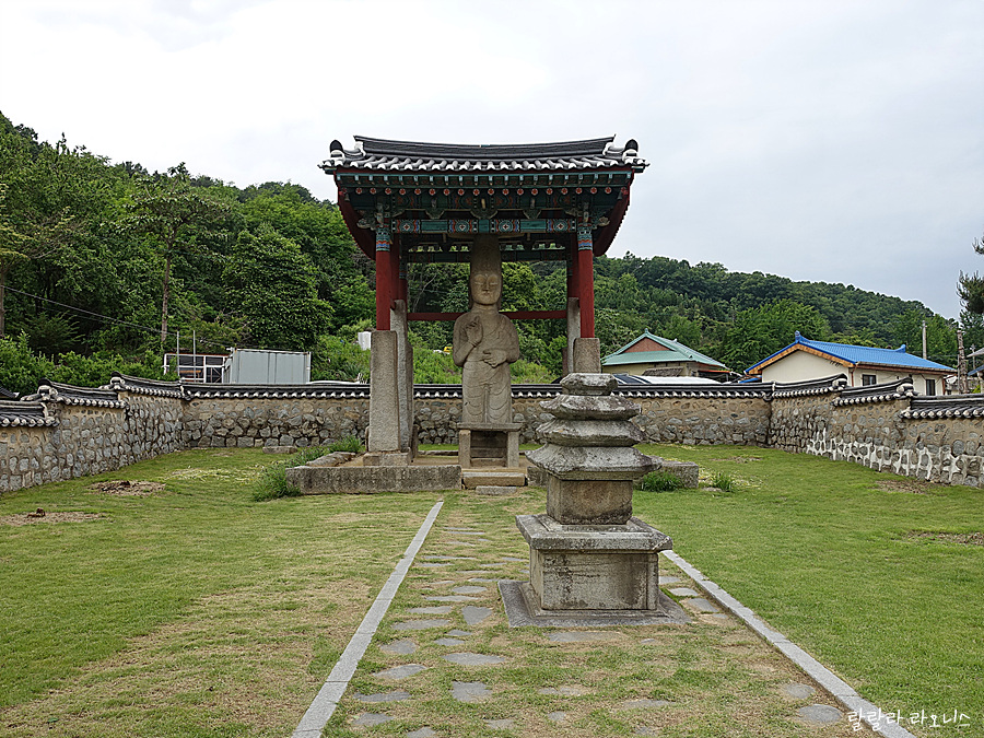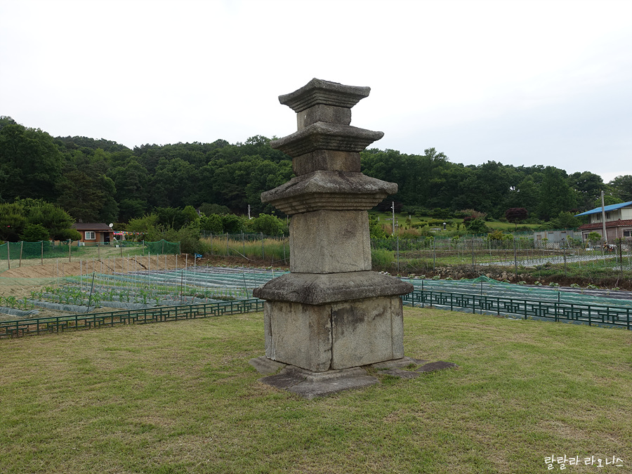 차 타고 이동하여 죽산리 삼층석탑을 만납니다. 밭 옆에 석탑이 있는 것이 눈길을 끕니다. 봉업사 절 근처입니다. 옛 봉업사의 불심을 이어가기 위해 현대에 새롭게 만든 절인 것 같습니다. 안내문에는 죽산리 삼층석탑이 봉업사 있던 곳이라 적고 있습니다. 포스팅 맨 처음 만난 봉업사지에서 석탑까지 직선거리로 500m 정도 떨어져 있습니다. 봉업사가 상당히 큰 절이었다는 것을 짐작할 수 있습니다.