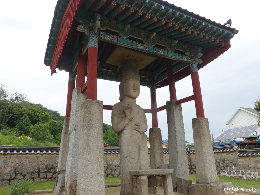 석탑에서 위로 올라가면 죽산리 석불입상이 있습니다. 연꽃 모양의 대좌 위에 불상이 놓여 있습니다. 높이는 3.36m. 죽주산성 아래 쓰려 있던 것을 현 장소에 다시 세운 것입니다. 시간이 흘러 표정이 흐릿하지만 온화한 모습은 느낄 수 있습니다. 안내문에는 고려 초기에 만든 것으로 적고 있습니다. 검색해보면 9세기 통일신라 작품으로 나오기도 합니다.