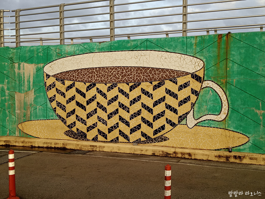 해수욕장에서 여객터미널 가는 길에 커피 그림이 이어집니다.