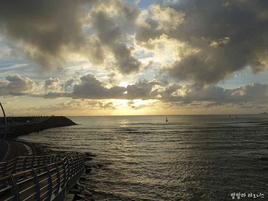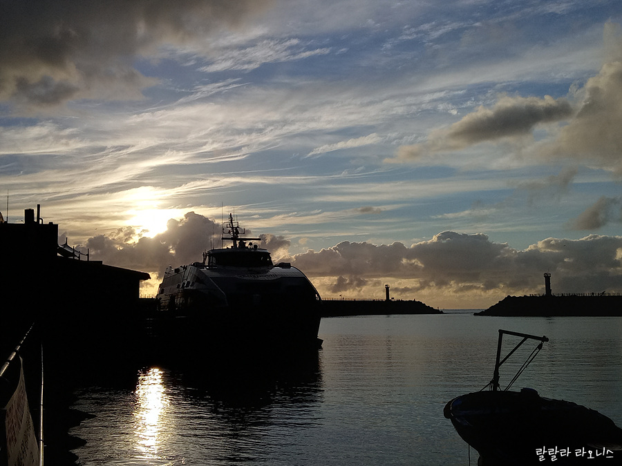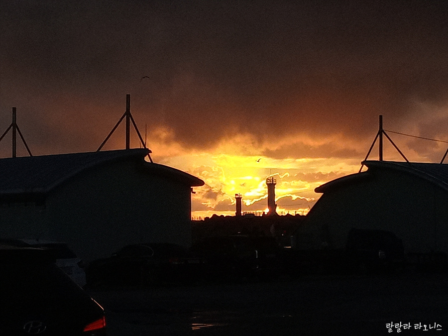 강릉항에 도착했을 때 하늘이 심상치 않습니다. 저 멀리 바다 어딘가에서 해가 떠오릅니다. 강릉항 도착시간과 해돋이 시간이 거의 비슷했던 것입니다. 해돋이로 황금빛으로 물들어가는 모습이 완전 아름답습니다. 생각지도 못했던 풍경이기에 더욱더 빠져듭니다.
