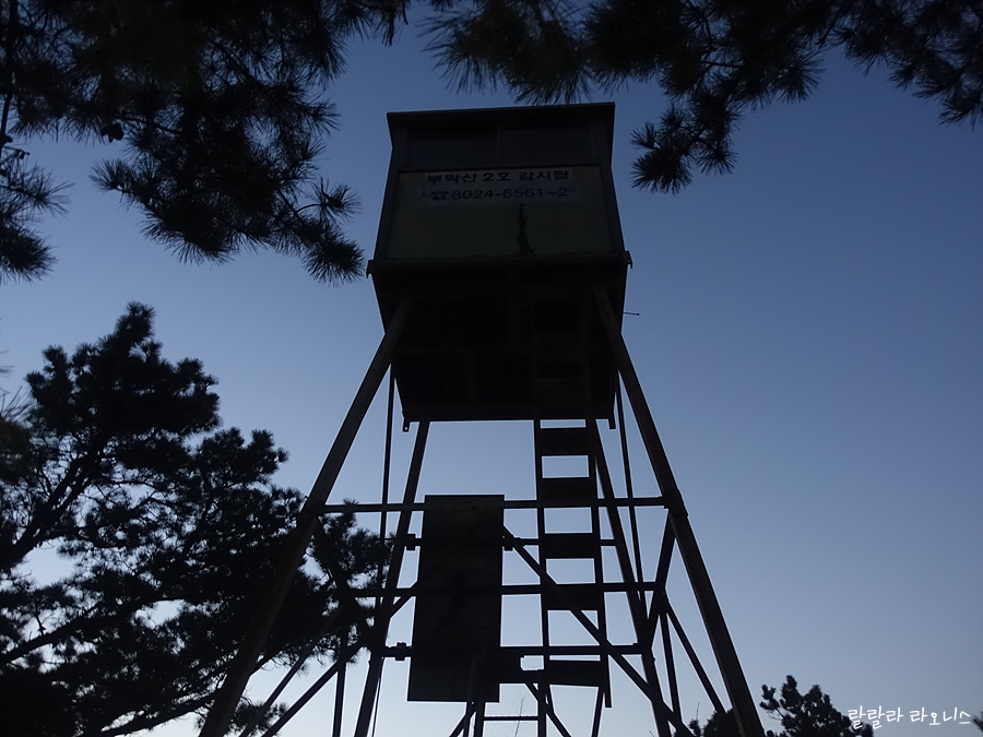 흔치휴게소에서 10여 분 정도 걸어가니 부락산 정상에 도착합니다. 정상에 감시탑이 있습니다.