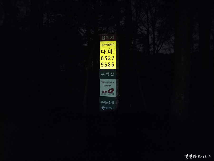 흔치휴게소 지나자마자 사거리가 나옵니다. 여기서 어느 방향으로 갈지 정해야 합니다. 일단 부락산 정상으로 가보기로 합니다. 부락산 정상까지는 1㎞ 정도이니 금방입니다. 이정표 사진은 해돋이 보고 돌아오는 길에 찍은 것입니다.