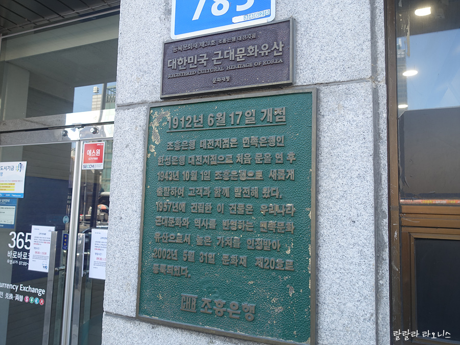 지금 신한은행 건물이 있던 곳은 1912년 한성은행 대전지점이었습니다. 이후 조흥은행 대전지점이 되었습니다. 1957년 현재의 건물을 지었습니다. 2006년 조흥은행이 신한은행과 합병하면서 현재는 신한은행 건물입니다. 조흥은행 대전지점 건물도 등록문화재입니다. 근대문화탐방로의 마지막 건물입니다.