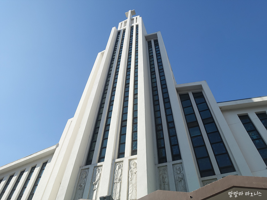 옛 대전부청사 끼고 왼쪽으로 직진하면 독특한 모양의 건물을 만납니다. 대흥동 성당입니다. 성당이라 하면 붉은 벽돌에 고딕풍의 모습이 떠오릅니다. 대흥동 성당은 모양도 그렇고 하얀색의 외벽이 눈길을 끕니다. 깔끔합니다. 주변에 높은 건물이 있지만 예전에는 랜드마크로서 눈에 띄는 건물이었겠습니다.