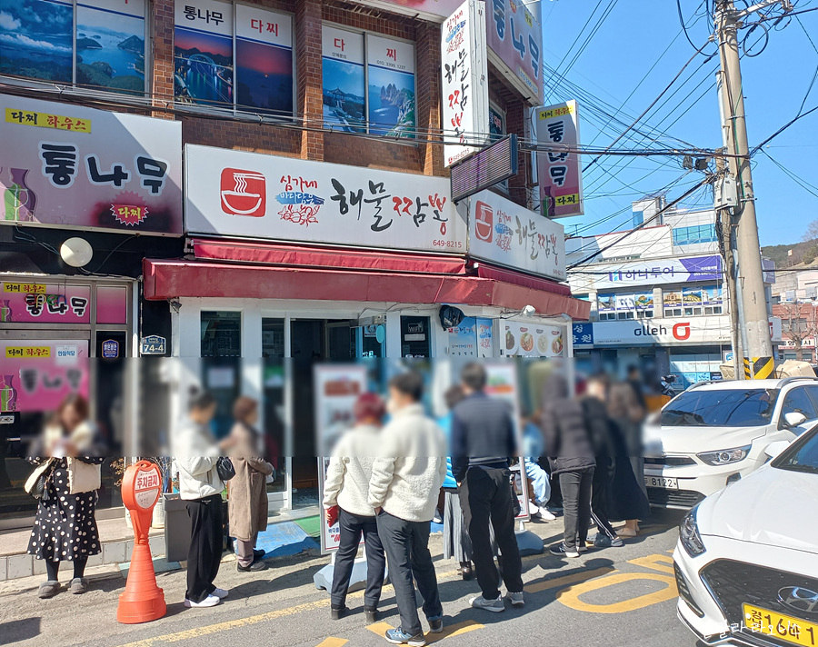 서호시장 정류장에서 내린 후 지도 앱을 켜고 식당을 찾아갑니다. 사람이 길게 줄 서 있는 것이 보입니다. 뭐지? 삼가네 해물짬뽕입니다. 통영까지 와서 짬뽕이냐 하면서 지나갔습니다. 나중에 찾아보니 해물짬뽕 비주얼이 대단하네요. 줄 서서 먹을만하겠습니다.