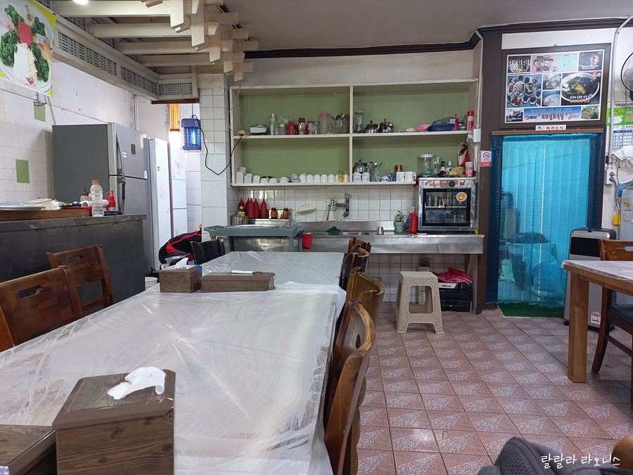 식당 안은 테이블이 많지 않습니다. 5~6개 정도만 보입니다. 손님이 많지 않습니다. 2테이블 정도에서만 식사하고 있었습니다. 이내 다 드시고 나갔고요. 식당은 할머니, 할아버지 두 분이 운영하십니다. 할머니가 주방에서 요리하시고 할아버지께서 서빙하시고요. 어르신들이 운영하시는 식당이기에 빨리 이루어지진 않습니다. 천천히 기다려주시고요.
