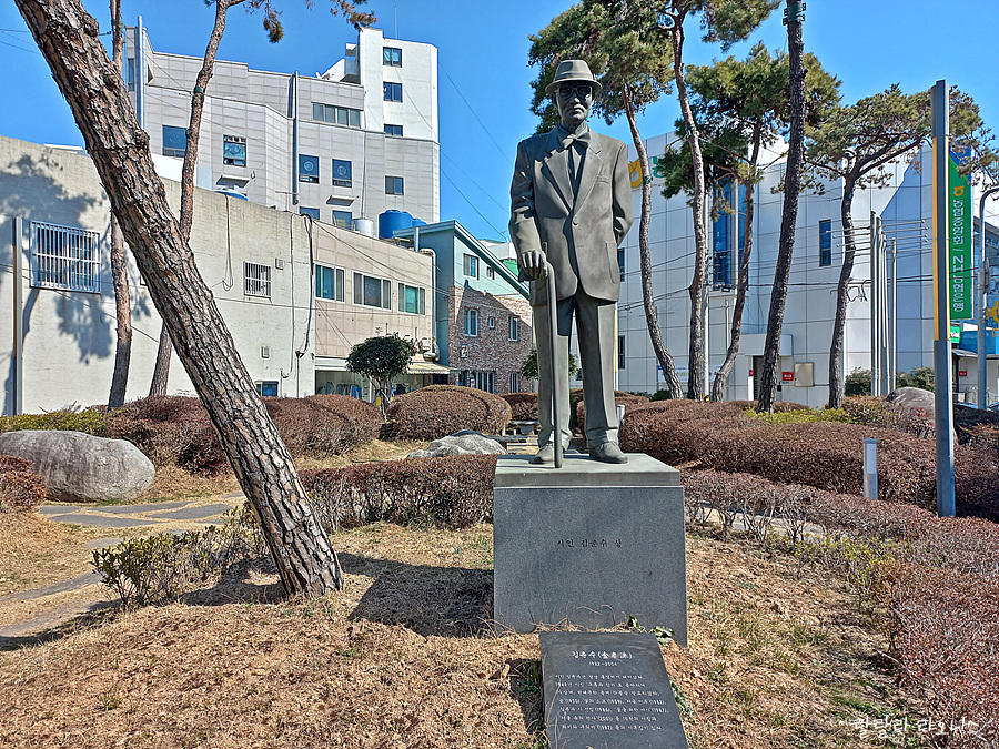 후식으로 달달한 것을 먹고 싶습니다. 꿀빵을 먹어야겠습니다. 통영에 널린 게 꿀빵집이지만 원조에서 먹고 싶습니다. 지도를 보니 꿀빵의 원조라는 오미사꿀빵 본점이 멀지 않습니다. 오미사꿀빵 본점 가는 길에 김춘수 시인을 만납니다. "내가 그의 이름을 불러주었을 때 그는 나에게로 와서 꽃이 되었다." 시 꽃으로 유명한 김춘수 시인의 고향이 통영입니다.