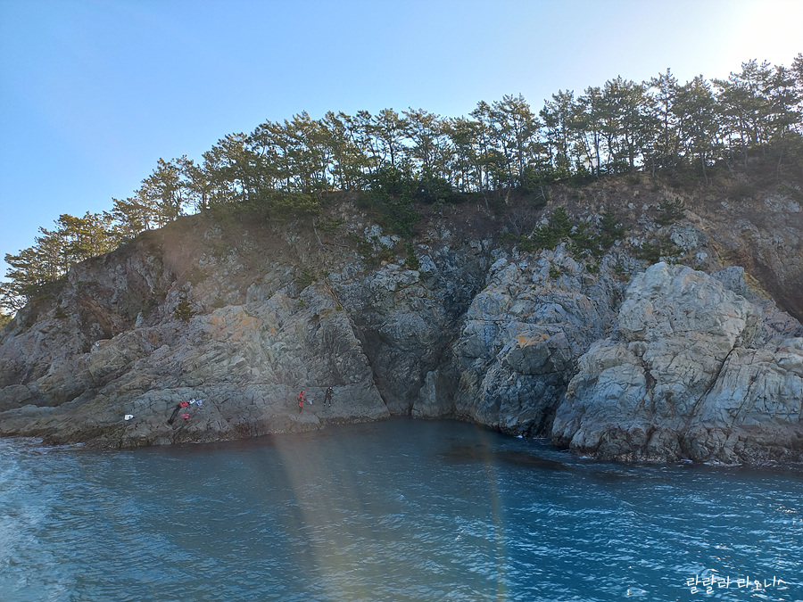 제가 기록한 것이 맞다면 이 섬은 소혈도입니다. 갯바위 위에서 낚시하는 사람들이 보입니다. 저렇게 낚시하면 무섭지 않나요? 안전하게 월척 올리시길 바랍니다.
