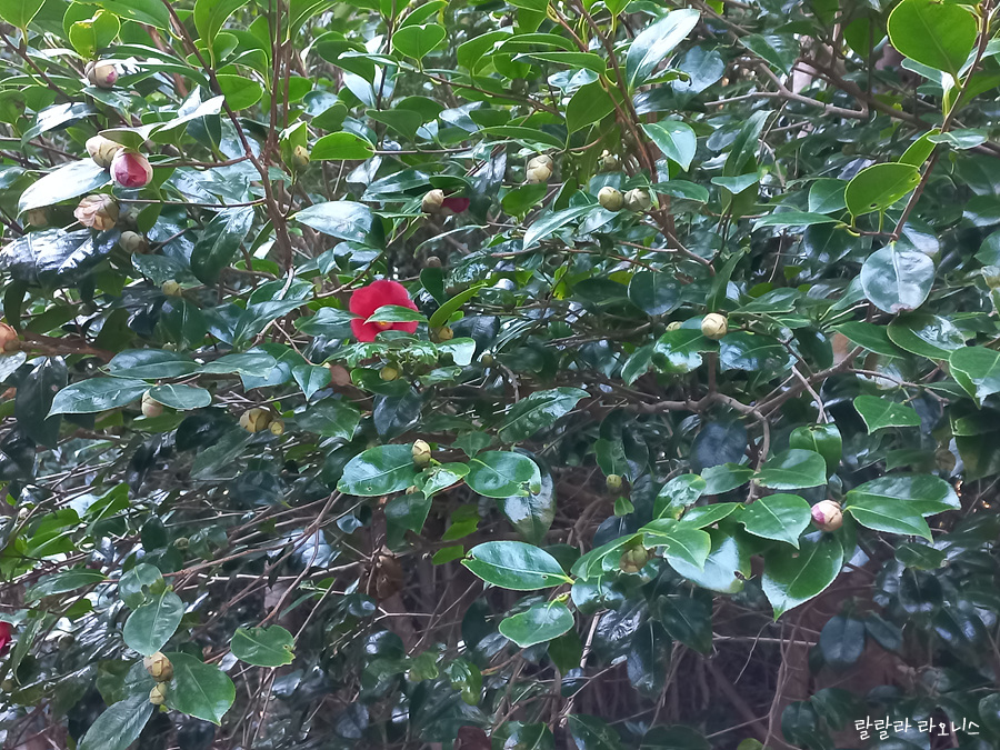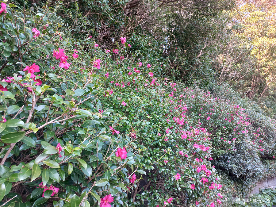 입구부터 동백을 볼 수 있습니다.