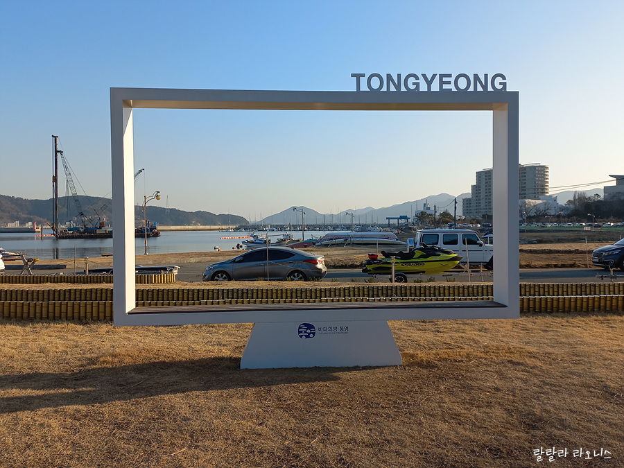 새벽 통영 이곳저곳을 다닙니다. 시내버스 타고 통영유람선터미널로 향합니다. 버스에서 잠깐 졸아서 내려야 할 정류장을 지났습니다. 다행히 버스 종점이 통영유람선터미널 근처입니다. 터미널로 가는 길에 통영 포토존을 만납니다. 포토존 만난 것은 전화위복이고 행운입니다. 통영에 왔음을 실감합니다.