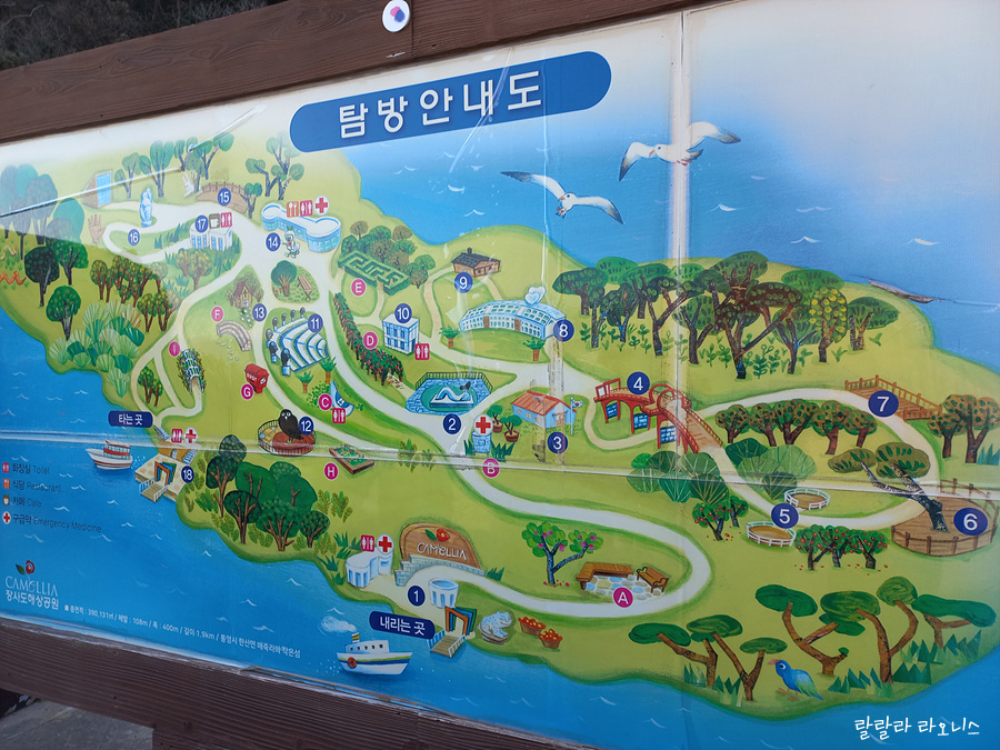 탐방 안내도를 보면 숫자가 있습니다. 숫자를 따라서 돌아보면 됩니다. 섬 안에 이정표가 잘 되어 있고 길도 복잡하지 않아서 섬 살펴보는데 어렵진 않습니다. 섬 안에 다른 교통편은 없습니다. 무조건 걸어야 합니다. 오르막길도 있고 해서 어르신들 다니시기에는 힘들 수도 있겠습니다.