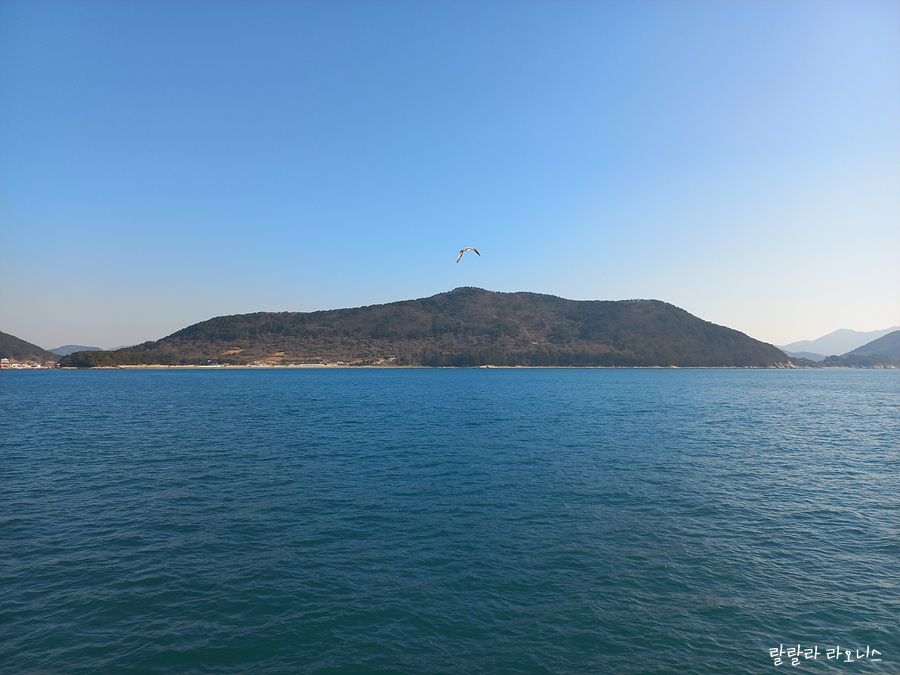 저는 2층에서 계속 머무릅니다. 2월 말이라 바닷바람에 냉기가 있지만 춥기보다는 상쾌합니다. 평소 답답했던 마음이 시원하게 풀립니다. 날씨도 좋고 기분도 좋고 아무튼 이래저래 좋습니다. 여행 오길 잘했다는 생각이 저절로 듭니다. 선장님이 방송으로 돌고래가 지나갈 수 있다고 해서 유심히 찾아봤는데 보이지 않습니다.