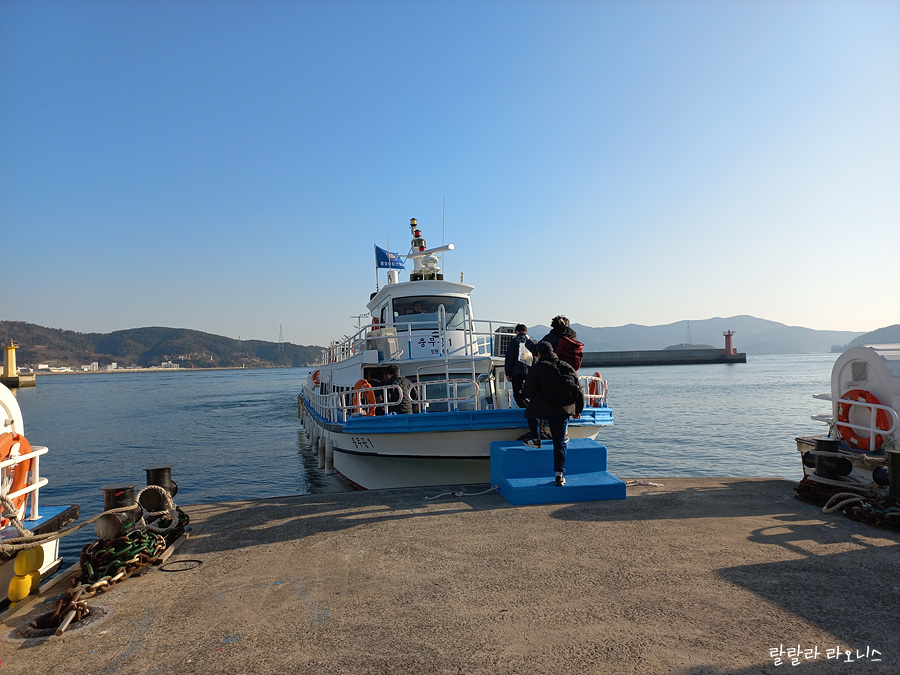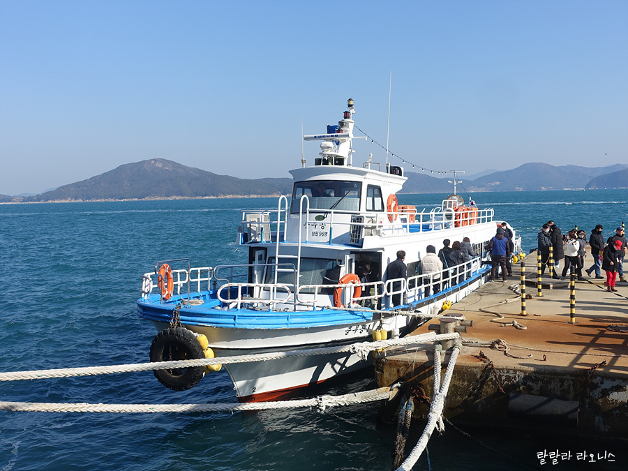 예약자가 얼마 없어서 했던 걱정은 쓸데없는 걱정이었습니다. 단체관광객들이 우르르 몰려왔습니다. 개별 여행자들도 많이 보입니다. 남녀노소 삼삼오오 모이면서 터미널이 북적북적합니다. 소심한 aaa(triple a)형은 이래저래 걱정이 많습니다. 장사도로 들어가는 배가 들어옵니다. 생각보다 사이즈가 작습니다. 탑승정원 96명입니다.