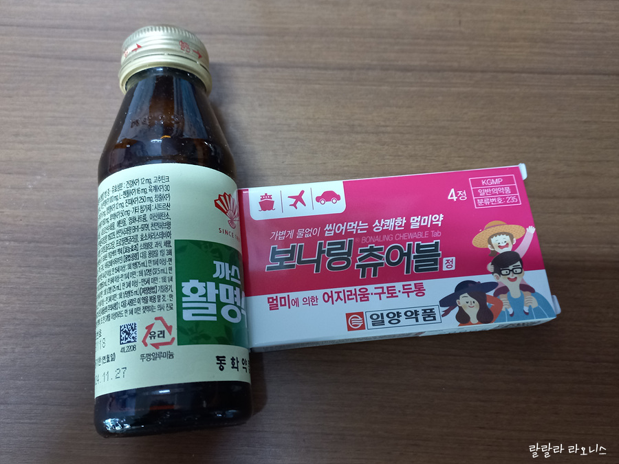 배 타고 40분 간다고 하니 멀미할까 봐 긴장했습니다. 통영 가기 전 멀미약을 샀습니다. 저는 멀미약 먹을 때 소화제와 같이 먹습니다. 그래야 멀미 예방 효과가 더 좋다는 나름의 노하우(?)이기도 합니다. 이날 날씨도 좋고 파도도 잔잔한 것이 멀미약 먹은 것은 좀 오바였습니다. 괜히 먹었다는 것이죠.