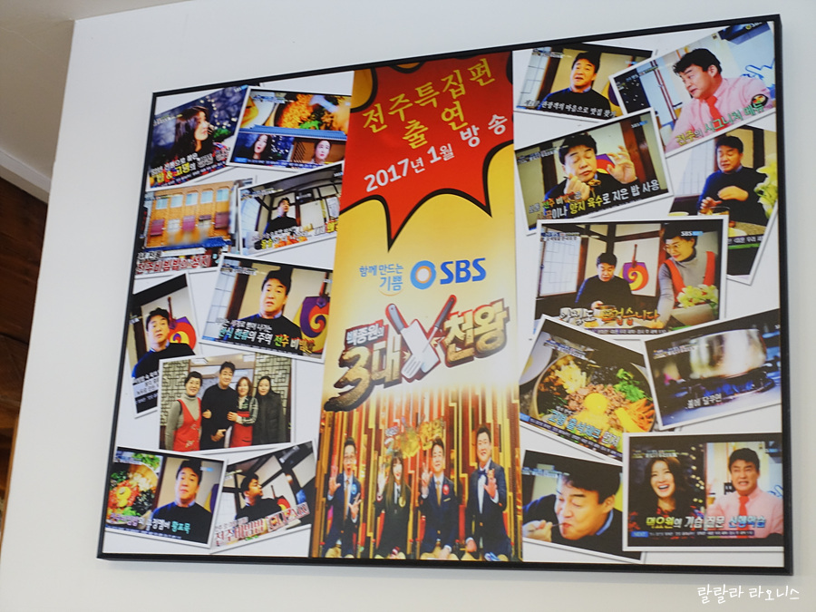 SBS 삼대천왕 전주특집편에 출연했다고 사진을 크게 걸어두었습니다. 백종원 씨 방송에 나왔다고 해서 모두가 인정하는 맛집은 아닙니다. 식당 선택하는 데 참고할 수 있습니다. 삼대천왕 방송은 신뢰도가 좀 있습니다.