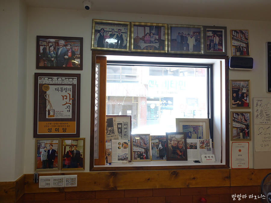 유명인들 식당 방문한 사진이 있습니다. 이름 석 자만으로도 누구나 알만한 사람들의 사인이 있습니다. 특히 대통령의 맛집이라는 책 표지에도 눈길이 갑니다. 김영삼, 김대중, 노무현, 이명박, 박근혜, 문재인 대통령까지 성미당을 다녀갔다고 합니다. 대통령 때 아니고 그전에 왔다 간 경우도 있습니다. 성미당이 대외적으로 인지도가 있습니다.