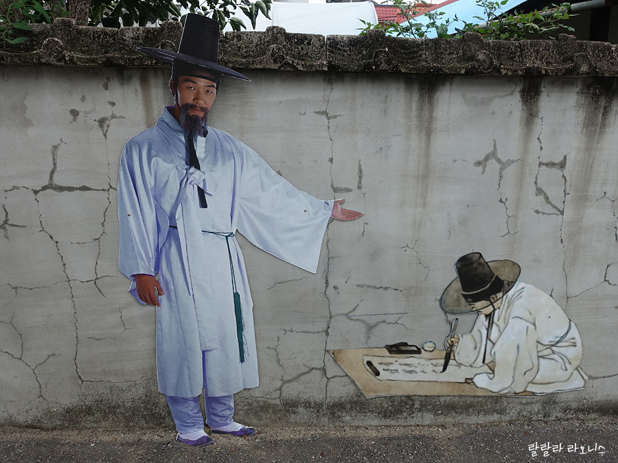 왼쪽 도포 자락 입은 사람은 사진입니다. 붓글씨 쓰고 있는 사람 그림도 있습니다.