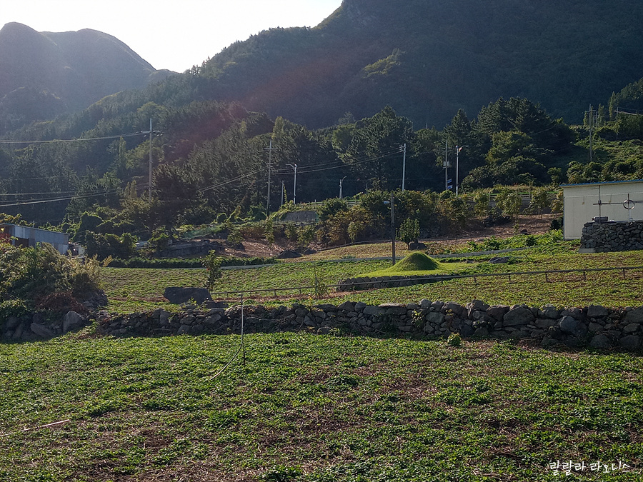 밭 위에 무덤이 보입니다. 돌 쌓아 올린 것도 보이는 것이 제주도를 연상케 합니다. 제주도와 울릉도는 비슷하면서도 다릅니다. 화산섬이고 육지에서 멀리 떨어져 있는 것은 비슷합니다. 울릉도는 압축적으로 단단함이 보입니다. 반면 제주도는 부드러움이 느껴집니다.