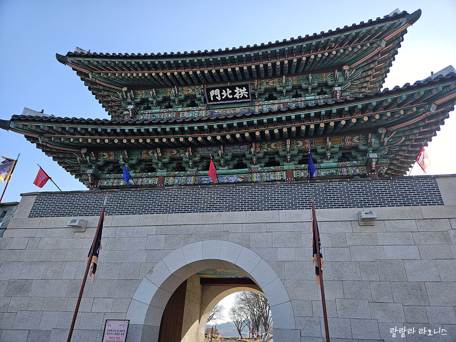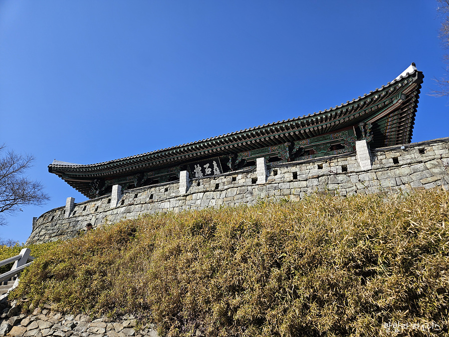 중앙시장에서 육회비빔밥 먹고 진주성으로 이동합니다. 자동차로 5분 정도 걸립니다. 공북문 앞 주차장에 도착합니다. 주차장이 좁습니다. 빈자리가 몇 개 없습니다. 주차 관리하는 분들이 빈자리를 찾아줍니다. 공북(拱北)은 신하가 임금이 있는 북쪽을 향해 공손하게 예를 올린다는 뜻입니다. 조선시대 진주성도에 진주성의 정문으로 나와 있습니다. 2002년 복원하였습니다.