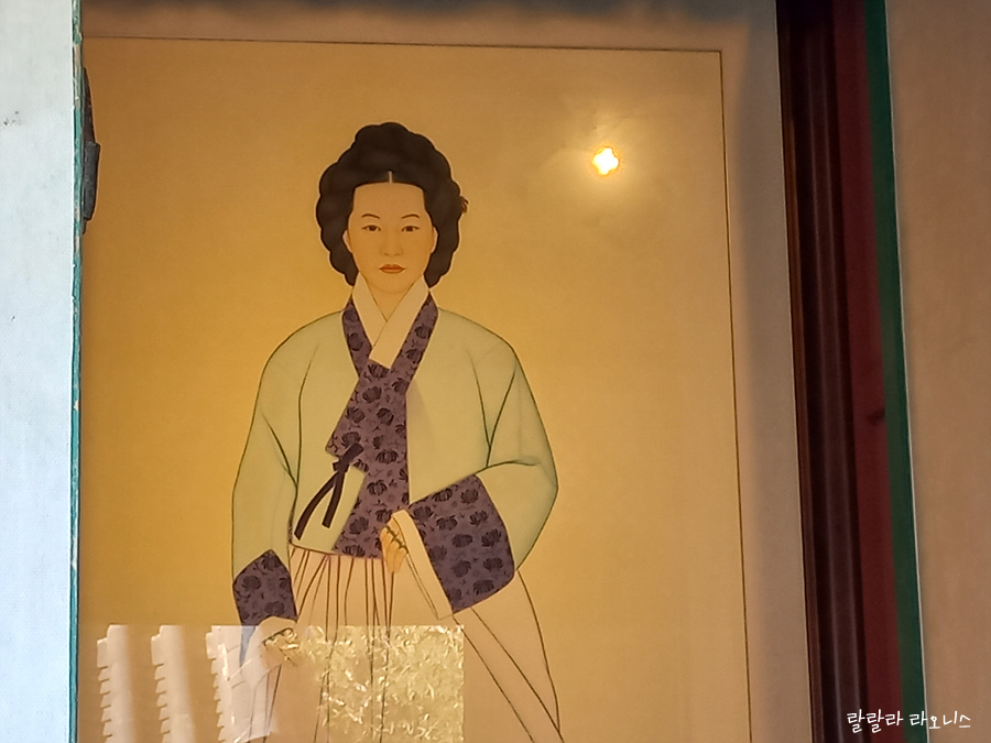 촉석루 옆에 의기사(義妓祠)가 있습니다. 의기사는 논개의 영정과 위패를 모신 사당입니다. 논개가 실존 인물이 아니라고도 합니다. 왜장을 껴안고 뛰어내렸다는 이야기가 허구라는 이야기도 있습니다. 실존 인물이고 당시 나이가 19~20살 정도로 보는 의견이 많습니다. 의기사 논개 영정을 봅니다. 지금의 또래와 비교해 보면 영정 속 논개 모습은 성숙하고 엄숙합니다. 열 손가락에 가락지가 껴져 있습니다.