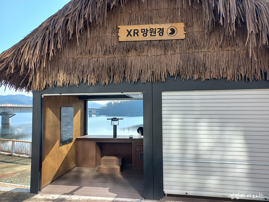 박물관 밖으로 나옵니다. XR 망원경을 통해 진양호를 바라보게 되어 있습니다. XR이라는 단어가 생소해서 찾아보니 eXtended Reality 확장현실을 뜻합니다. 가상현실 VR, 증강현실 AR, 혼합현실 MR을 합친 것입니다. 그런데 망원경이 작동하지 않습니다. 망원경 옆에는 막혀 있고요. 진양호를 바라보면서 청동기시대 살았던 사람들의 흔적을 마음속으로 상상합니다.