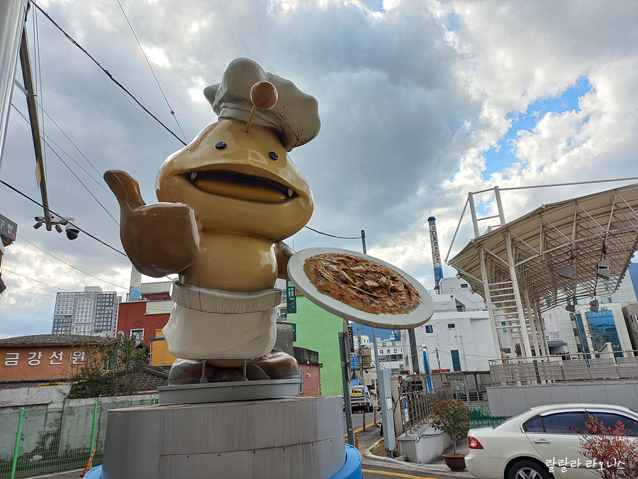 오동동 문화광장 앞에는 아구찜 들고 있는 아구가 있습니다. 아구찜이 피자처럼도 보입니다. 아귀 생물을 보면 입도 크고 이빨로 날카롭고 색깔도 어두워서 무섭게 보입니다. 아구찜거리 아구는 귀엽습니다.