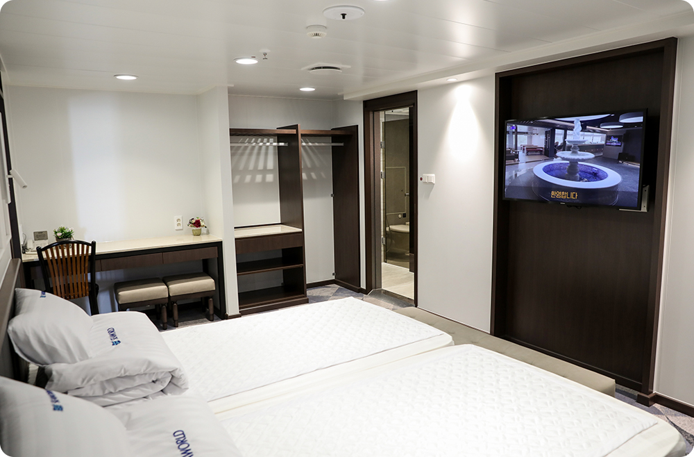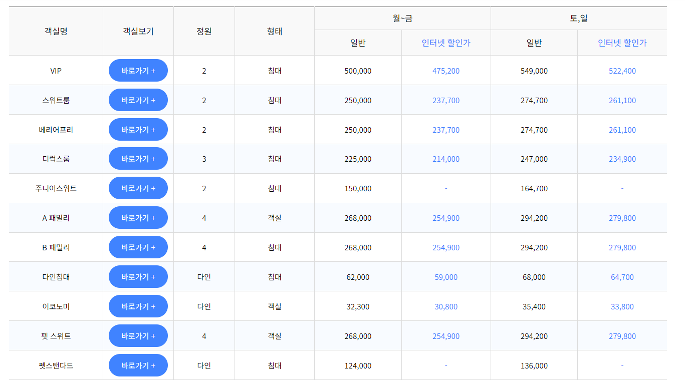 VIP 룸은 들어가 볼 수 없어서 씨월드고속훼리 홈페이지에서 사진을 가지고 왔습니다. 평일 1박에 500,000원. 주말은 549,000원. 직접 이용하지 않아서 룸 상태는 모르겠지만 가격대는 꽤 높아 보입니다. VIP룸에서 자보고 싶습니다. 퀸제누비아호에는 이코노미부터 VIP까지 객실 종류가 다양합니다. 침대도 있고 단체룸도 있고 반려동물과 함께할 수 있는 객실도 있습니다.