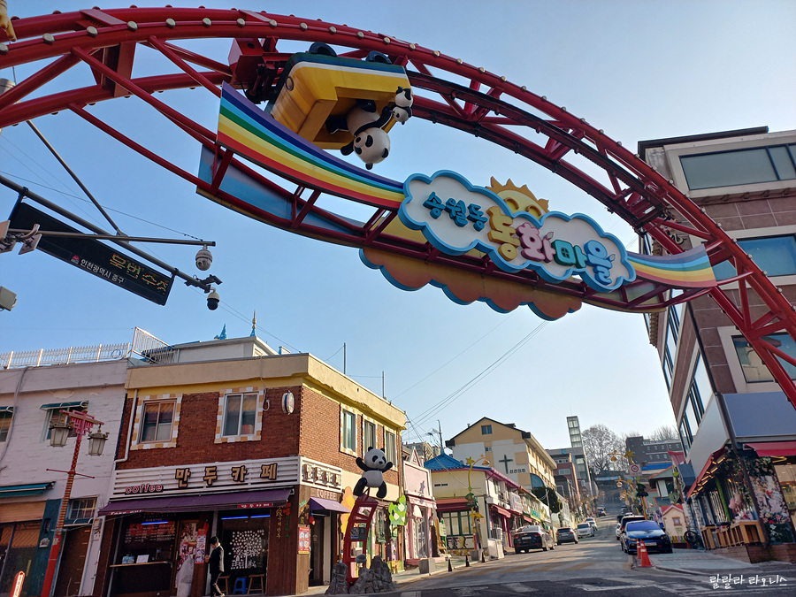 자유공원에서 조금만 내려오면 송월동 동화마을로 연결됩니다. 동화마을은 차이나타운 바로 옆이기도 하고요. 동화마을에는 우리나라 전래동화부터 외국의 애니메이션 작품들까지 마을 전체가 동화로 꾸며져 있습니다. 주로 벽화로 표현하였습니다. 동심의 세계로 빠져들 수 있어서 좋습니다. 난 순수하니까.