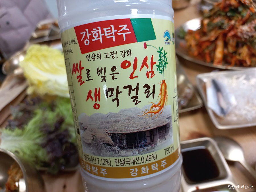강화도는 인삼이 유명합니다. 인삼막걸리도 함께 마십니다. 물론 운전자는 제외. 식당에서 막걸리 드신 분들이 맛있다고 하셔서 집에 돌아오는 길에 사 왔습니다. 1.5리터 한 병에 5,000원. 집에 와서 먹는데 인삼 향이 확 느껴집니다. 인삼도 위에 떠 있고요. 지금 다시 보니 인삼 비율이 높진 않네요.